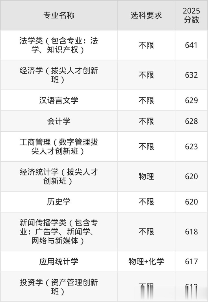 对于浙江高三学生而言,浙江工商大学热门专业是:法学类、经济学、汉语言文学、会计学、工商管理、经济统计学、历史学、新闻传播学类、应用统计学、投资学,2025年在浙江的最低分是613至641。